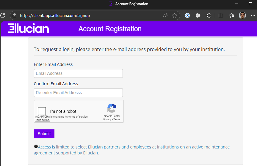 Note: Ellucian Customer Center account creation is not for Michener Students. Please navigate to the Student Self-Service Portal (Link Pending) to access your student account.